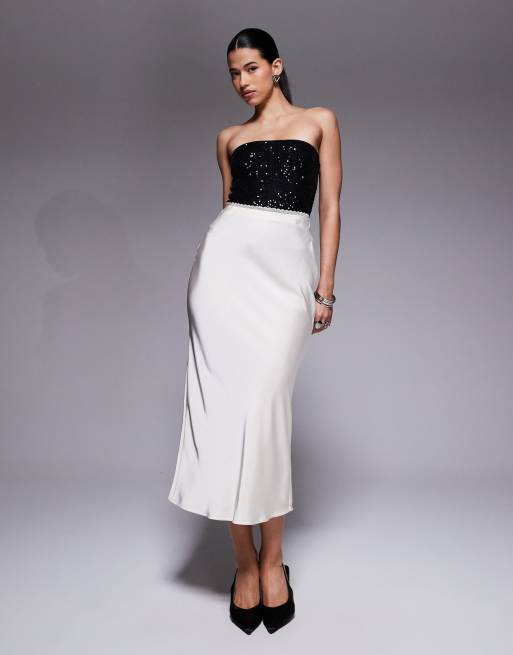 The Frolic exclusive satin lace trim maxi skirt in cream