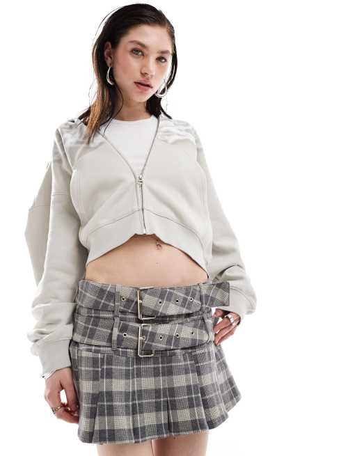 The Kript micro mini pleated skirt with double belt in plaid