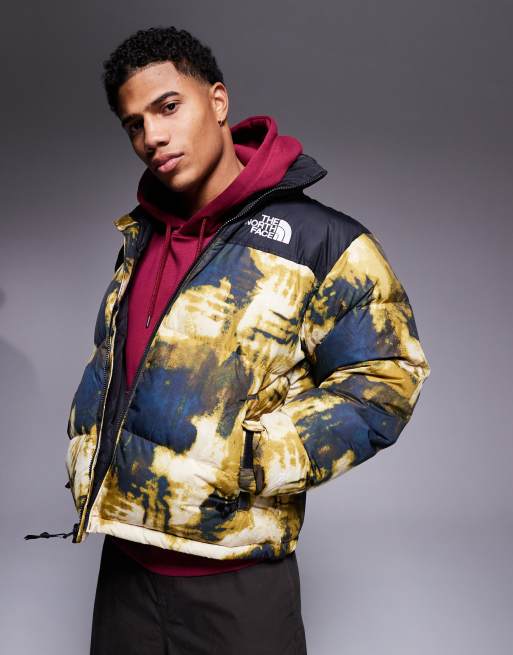The North Face 1996 Retro Nuptse down puffer jacket in bleach dye print and black