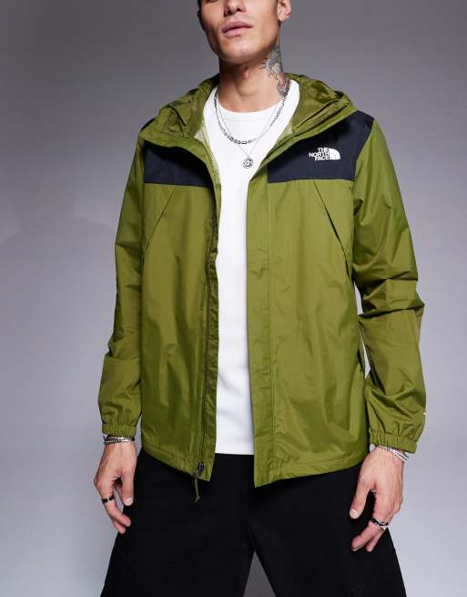 The North Face Antora hooded jacket in olive green and black