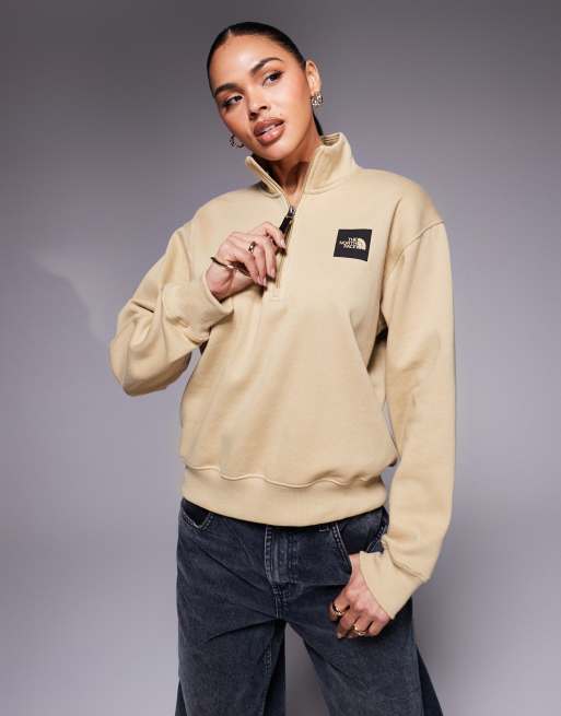 The North Face Box Half Dome quarter zip sweatshirt in brown