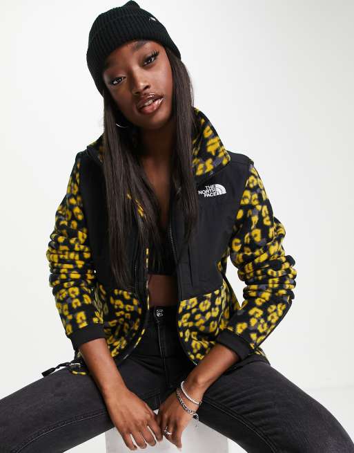 The North Face Denali 2 leopard print fleece jacket in black/yellow