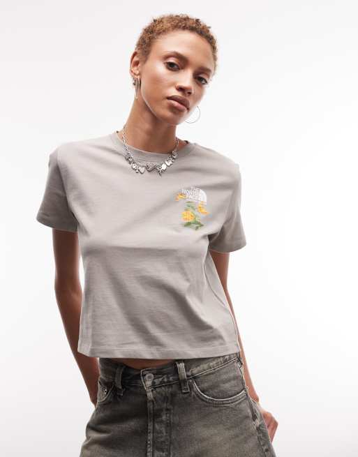 The North Face flower embroidery T-shirt in gray