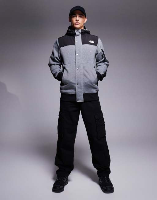 The North Face Highrail fleece insulated hooded jacket in gray heather and black