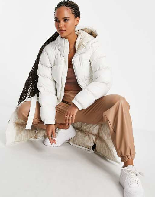 The North Face Nuptse Belted long puffer jacket in white