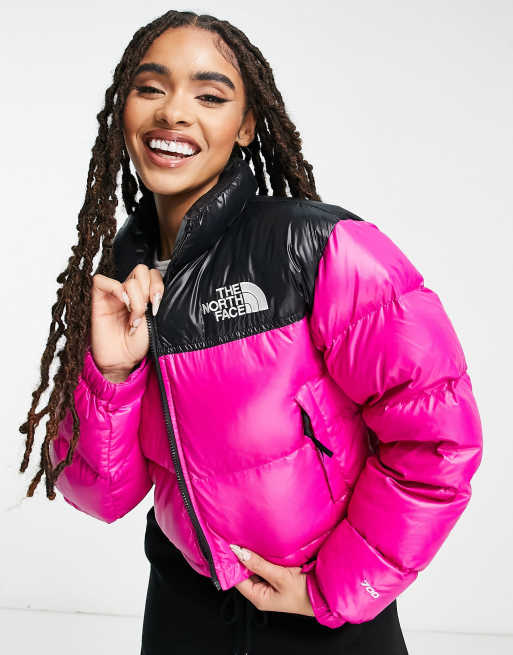 The North Face Nuptse cropped down jacket in fuchsia pink