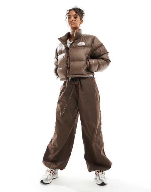 The North Face Nuptse cropped down puffer jacket in smokey brown