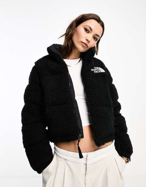 The North Face Nuptse cropped high pile fleece down jacket in black