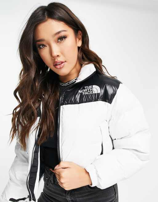 The North Face Nuptse cropped jacket in white