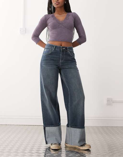 The Ragged Priest cuffed hems low rise baggy fit jeans in indigo