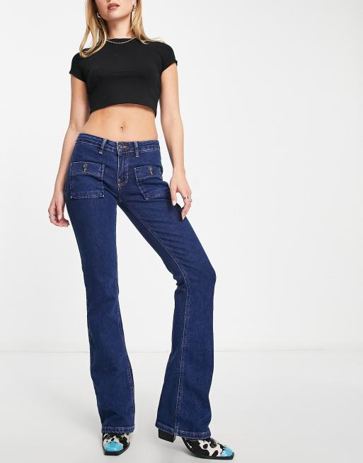 The Ragged Priest low rise y2k flared jeans in indigo blue