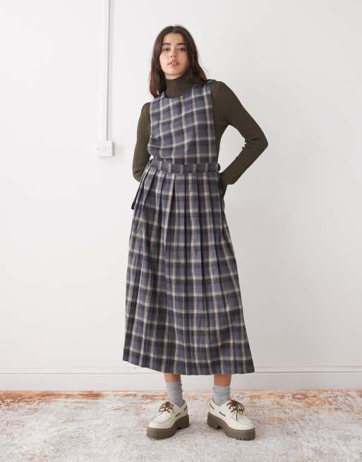 The Ragged Priest pleated pinafore dress in gray plaid