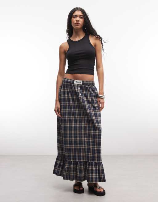 The Ragged Priest ruffle hem boxers-style maxi skirt in blue plaid