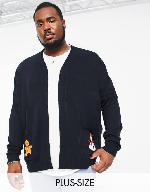 Threadbare Plus Christmas cardigan in navy