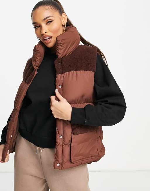 Threadbare Apple padded vest with fleece in chocolate