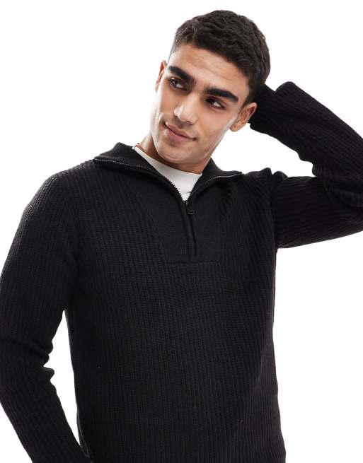 Threadbare chunky knit quarter zip sweater in black