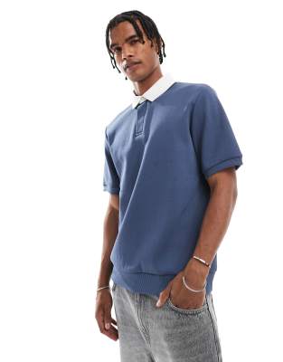 Threadbare cotton blend short sleeve polo top with contrast collar in blue