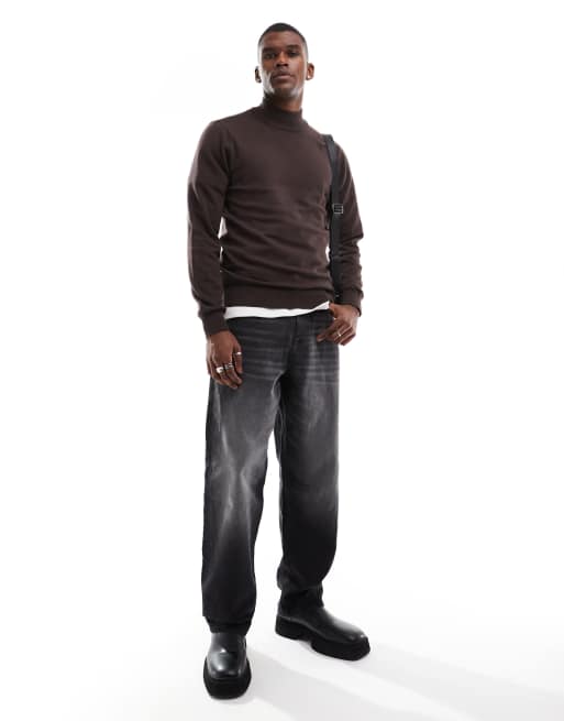 Threadbare cotton turtle neck sweater in brown