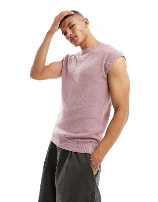 Threadbare crew neck knitted vest in lilac chalk