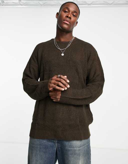 Threadbare heavy waffle stitch sweater in dark oak