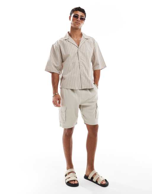 Threadbare linen mix cargo shorts with pocket details in stone