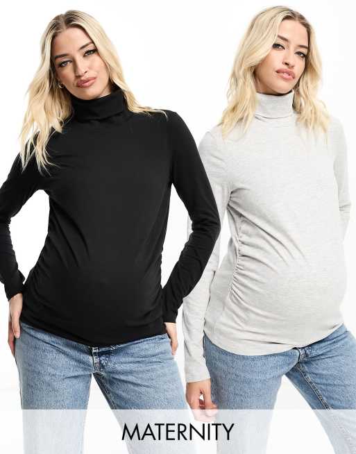 Threadbare Maternity 2 pack high neck long sleeve top in black and gray