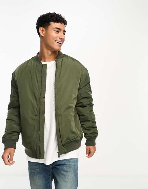 Threadbare oversized bomber jacket in khaki