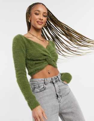 Threadbare Sasha twist front fluffy cropped sweater