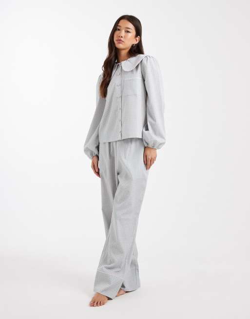 Threadbare seersucker gingham print pajamas with peter pan collar in blue
