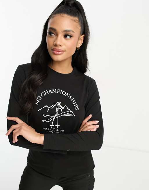 Threadbare Ski printed base layer long sleeve top in black