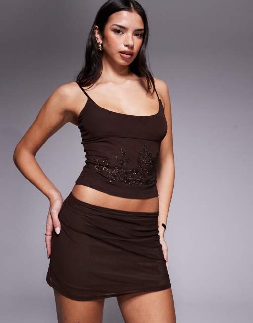 Tiger Mist Octavia slinky mesh mini skirt in chocolate - part of a set