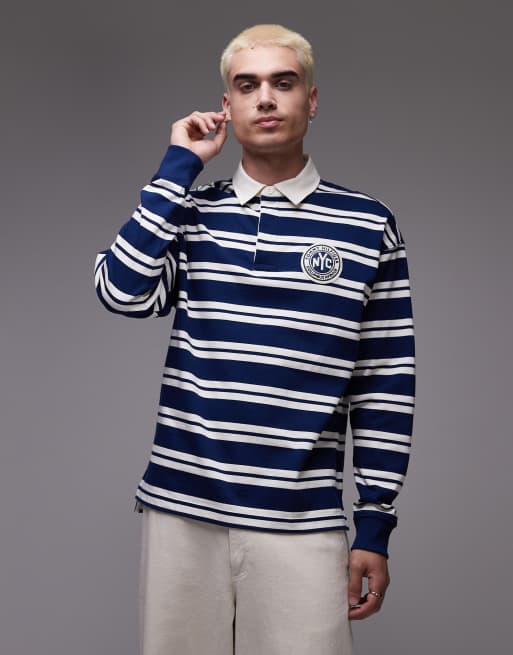 Tommy Hilfiger authentic striped chest logo rugby top in navy and white