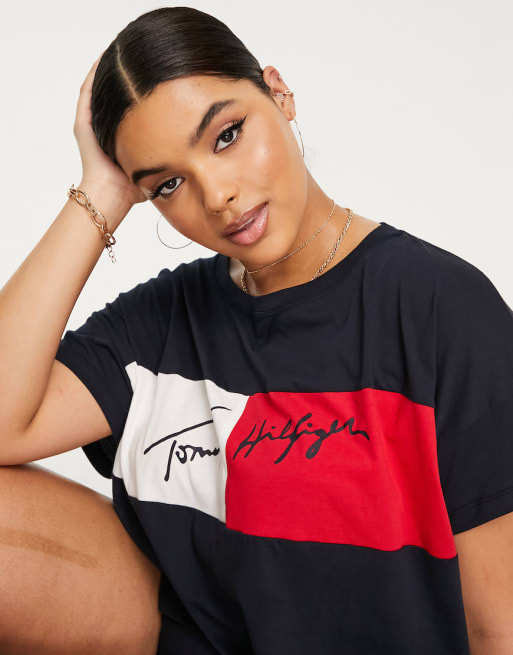 Tommy Hilfiger Curve logo cropped beach T-shirt set in navy - MULTI