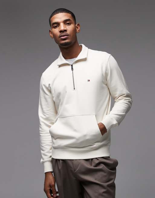 Tommy Hilfiger essential terry quarter zip sweatshirt in cream