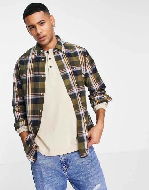 Tommy Hilfiger icon logo soft plaid shirt in black