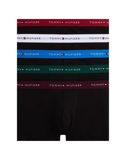 Tommy Hilfiger signature cotton essentials 5 pack briefs in black with white/green/purple/red/blue waistband