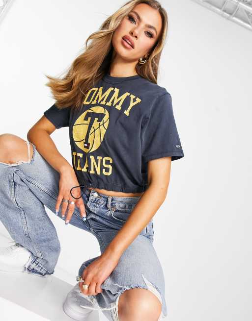 Tommy Jeans boxy cropped logo T-shirt in navy