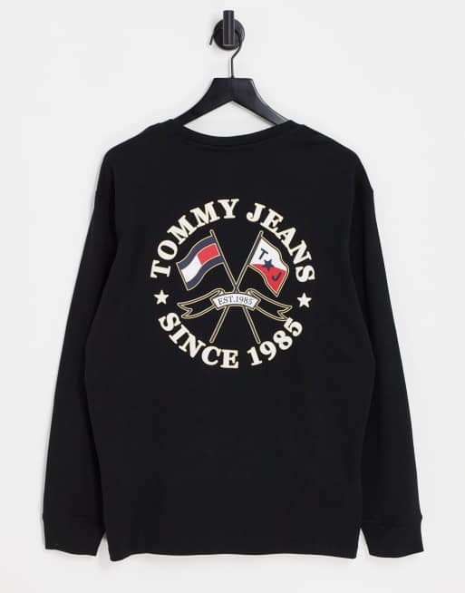 Tommy Jeans classic fit modern prep back logo long sleeve top in black