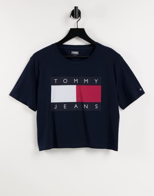 Tommy Jeans cropped flag logo t shirt in black