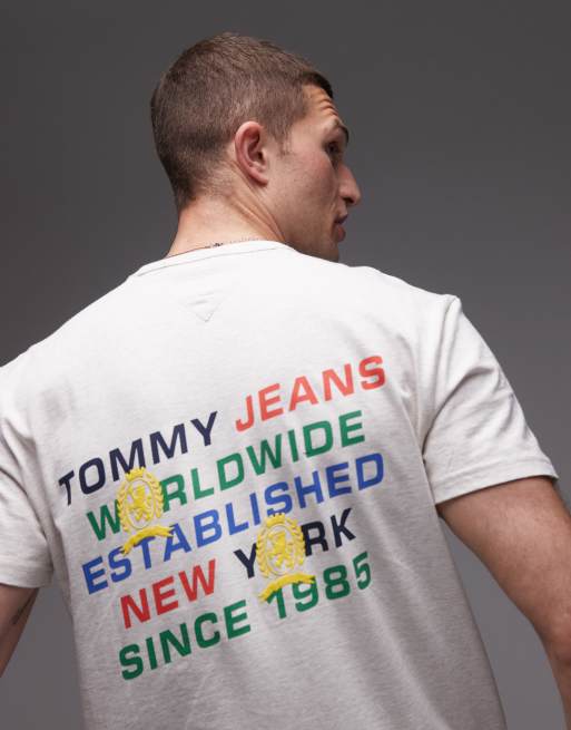 Tommy Jeans diagonal back print logo t-shirt in heathered oat