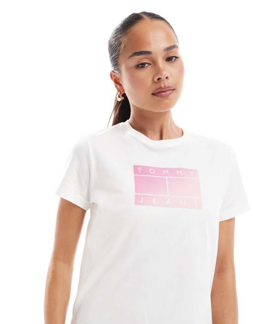Tommy Jeans gradient flag T-shirt in white and pink