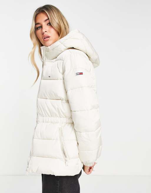 Tommy Jeans hooded puffer jacket in beige