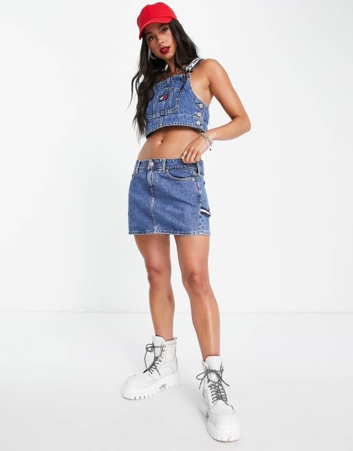 Tommy Jeans x ASOS exclusive logo denim mini skirt in mid wash - part of a set