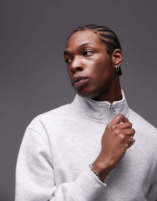 Topman 1/4 zip sweatshirt in ice gray heather