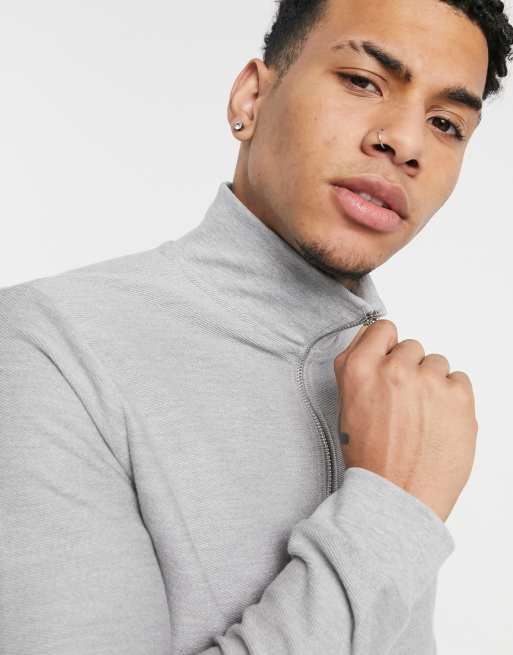 Topman 1/4 zip twill sweatshirt in gray