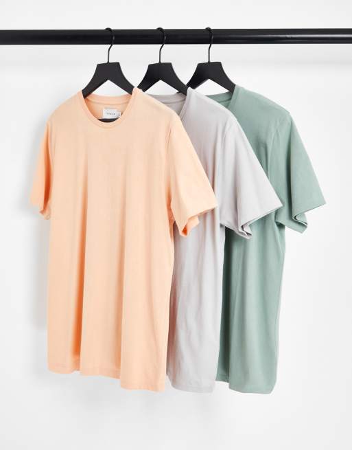 Topman 3 pack classic t-shirt in gray, apricot and sage