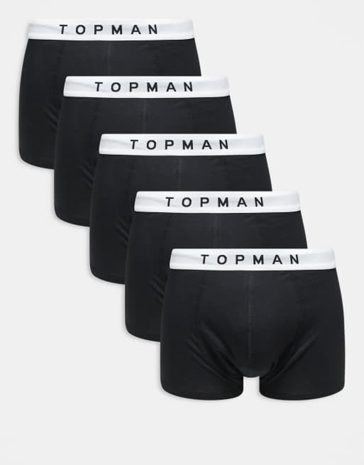 Topman 5 pack boxer briefs in black with white waistbands