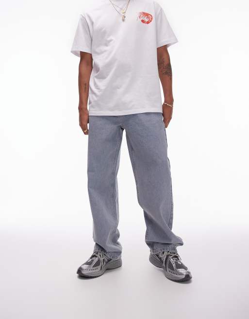 Topman baggy jeans in light wash blue
