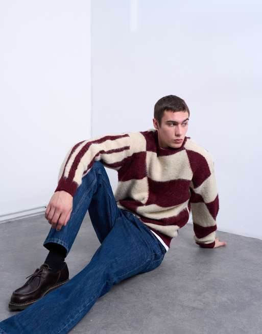 Topman burgundy and ecru color block sweater