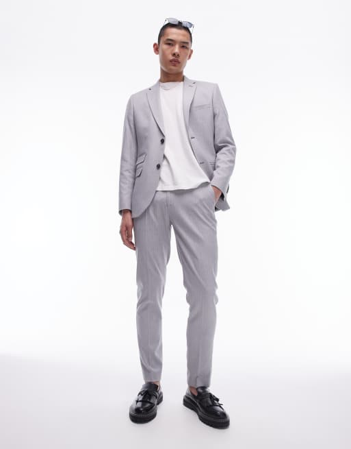 Topman herringbone slim pants in gray
